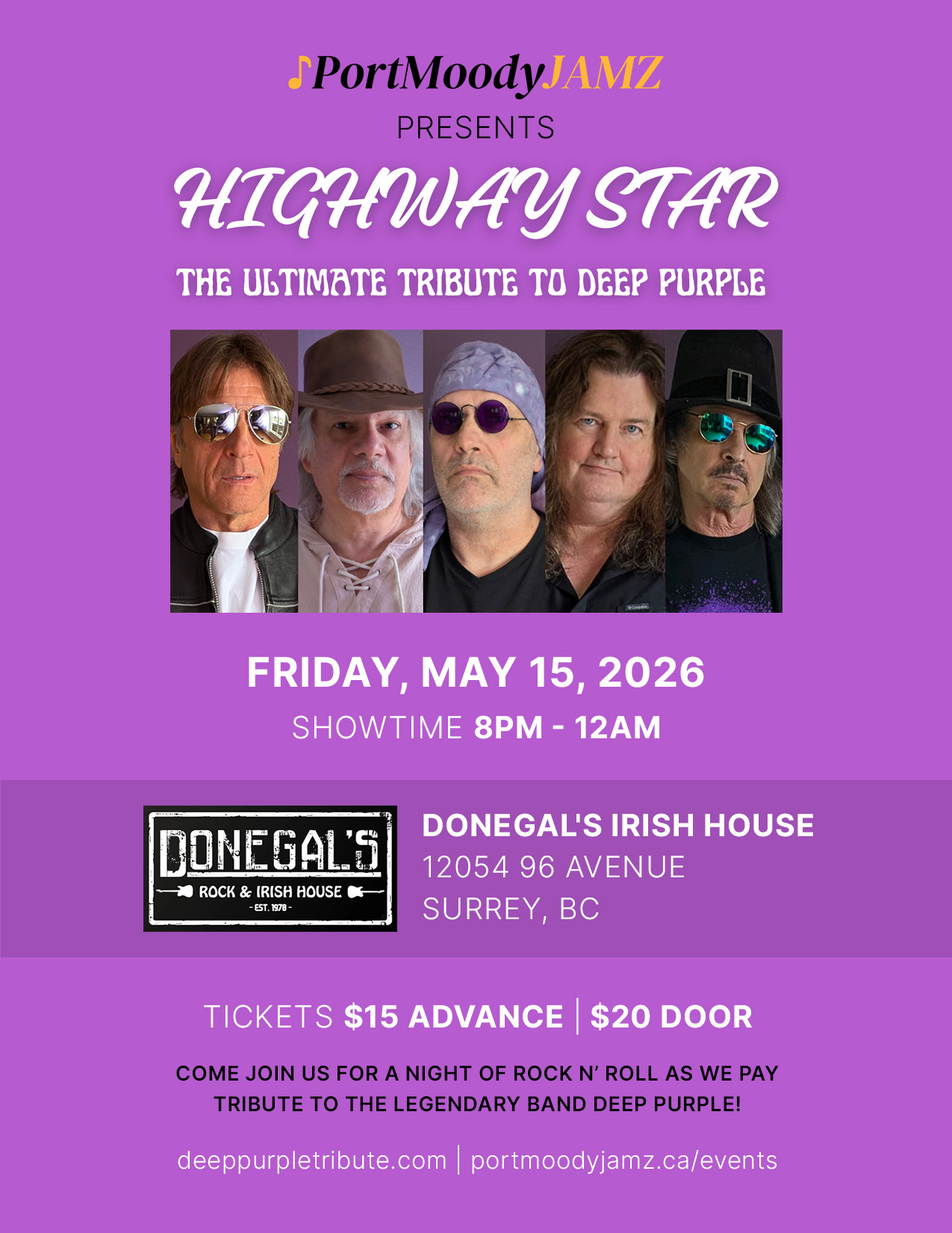 Come join us for a night of rock ‘n roll as we pay tribute to the legendary band Deep Purple!